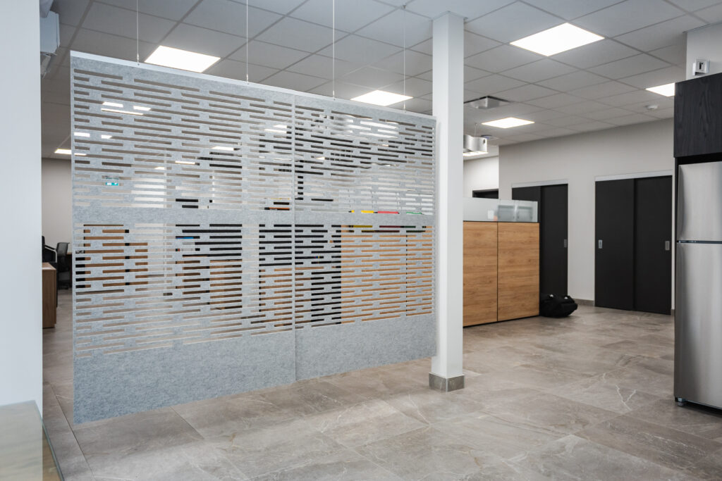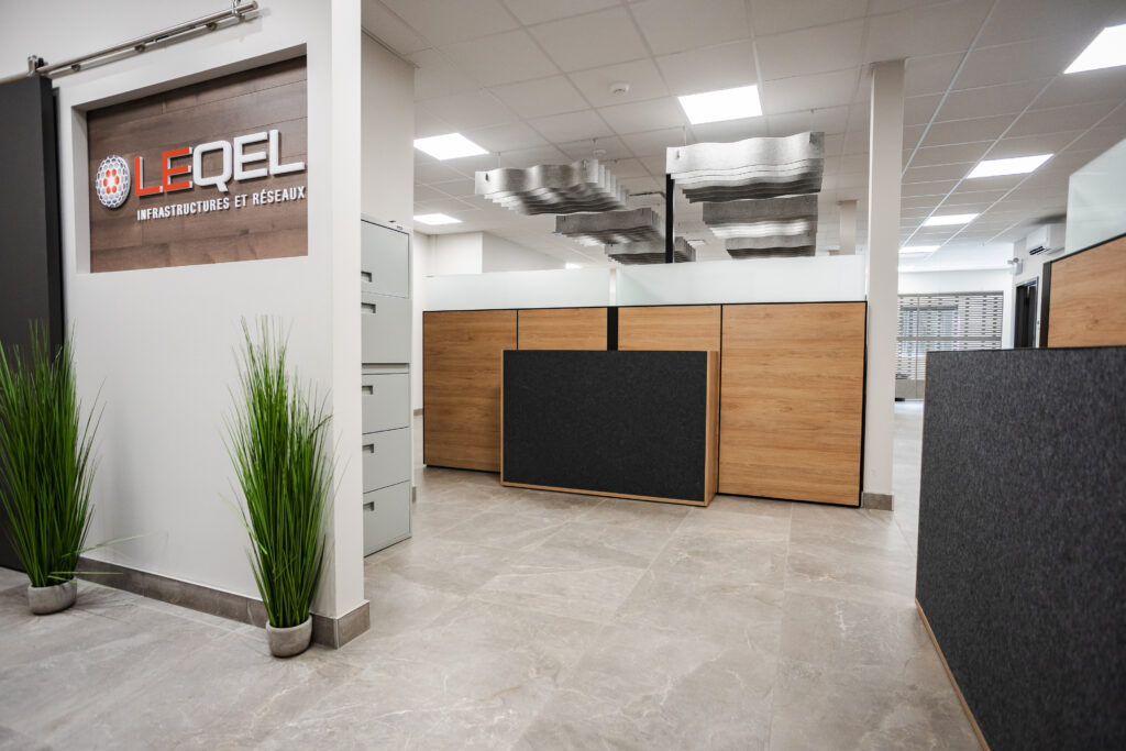 Lorsque l’entreprise LEQEL, spécialisée dans l’installation de poteaux, d’ancrages, de câbles aériens et souterrains ainsi que de fibre optique, a souhaité améliorer l’acoustique et le confort de ses espaces, sa fondatrice et directrice générale Marie-Claude Gonthier a choisi de faire confiance aux solutions Feltkütur. L’objectif : créer un environnement à la fois esthétique, fonctionnel et propice à la créativité.