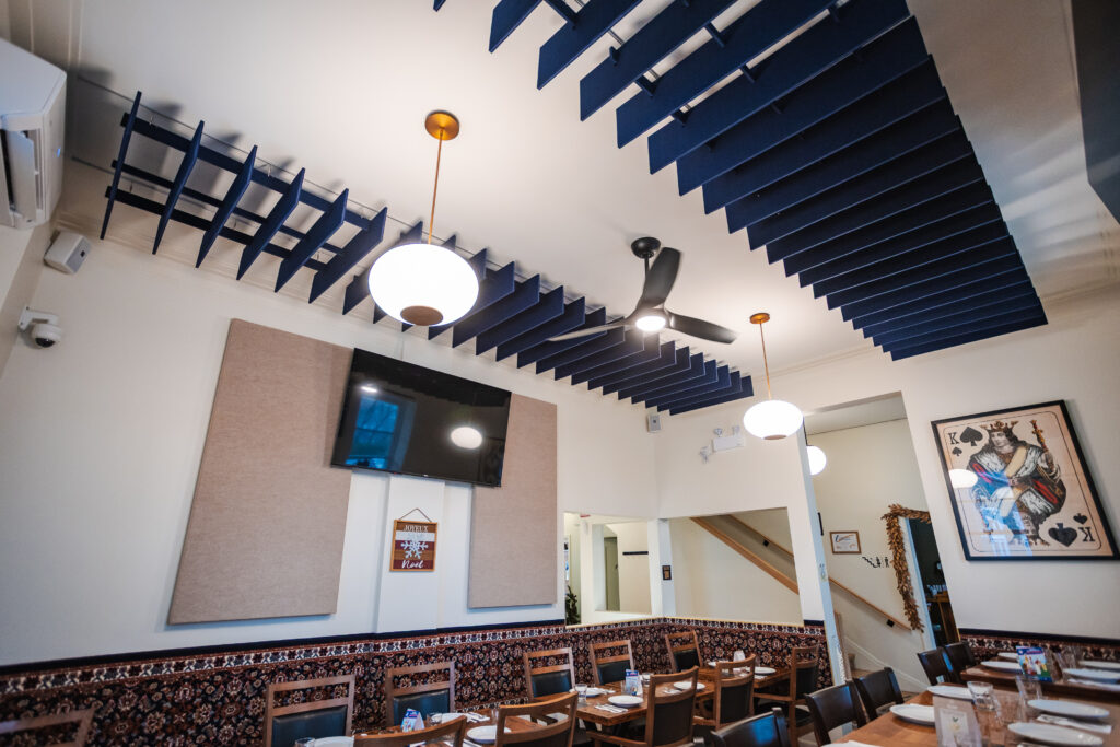 Throughout the project, the Feltkütur team provided end-to-end support, from the initial acoustic assessment to final installation, ensuring solutions tailored to the restaurant’s needs, space, and operational realities.